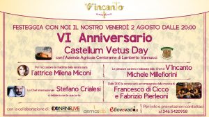 Il VI anniversario Castellum Vetus Day per una serata in cui si celebra l'evoluzione del noto locale unitamente ad espressioni d'arte musicale e del buongusto