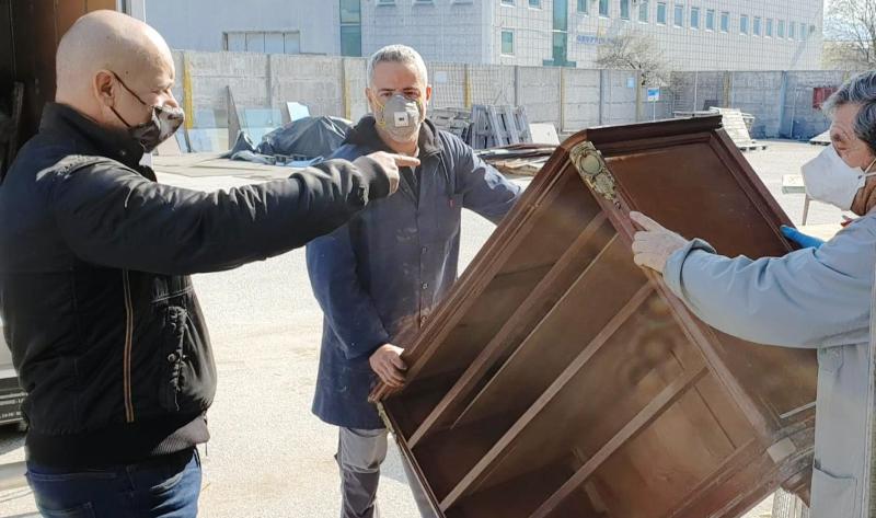 Davide Serafini dirige le operazioni di carico dei mobili di scena