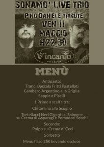 Serata cover Pino Daniele e aperitivo/cena di pesce. Venerdì 11 sera al V’Incanto di Carsoli