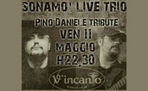 Carsoli – Una intera serata dedicata alla apprezzata musica del grande cantautore Pino Daniele con la Cover Band Sonamò Live Trio, quella organizzata per Venerdì 11 maggio 2018 a Carsoli nei locali di V’Incanto Enoteca”. Una occasioner per abbinare la musica in live con le degustazioni d’eccellenza per un aperitivo, un aperitivo cenato o una cena vera e propria con le proposte gourmet della cucina di V’Incanto. Una serata alla portata di tutti, per la soddisfazione del palato ed il divertimento della musica unica del grande artista. Per informazioni e prenotazioni si può consultare l’evento facebook cliccando qui.