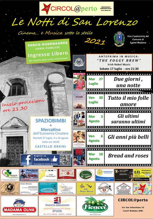 Castel Madama – Dopo il concerto rinviato per pioggia, si aprono ufficialmente oggi Le notti di San Lorenzo, a Castel Madama, organizzate da Circol@aperto con il patrocinio del Comune.
