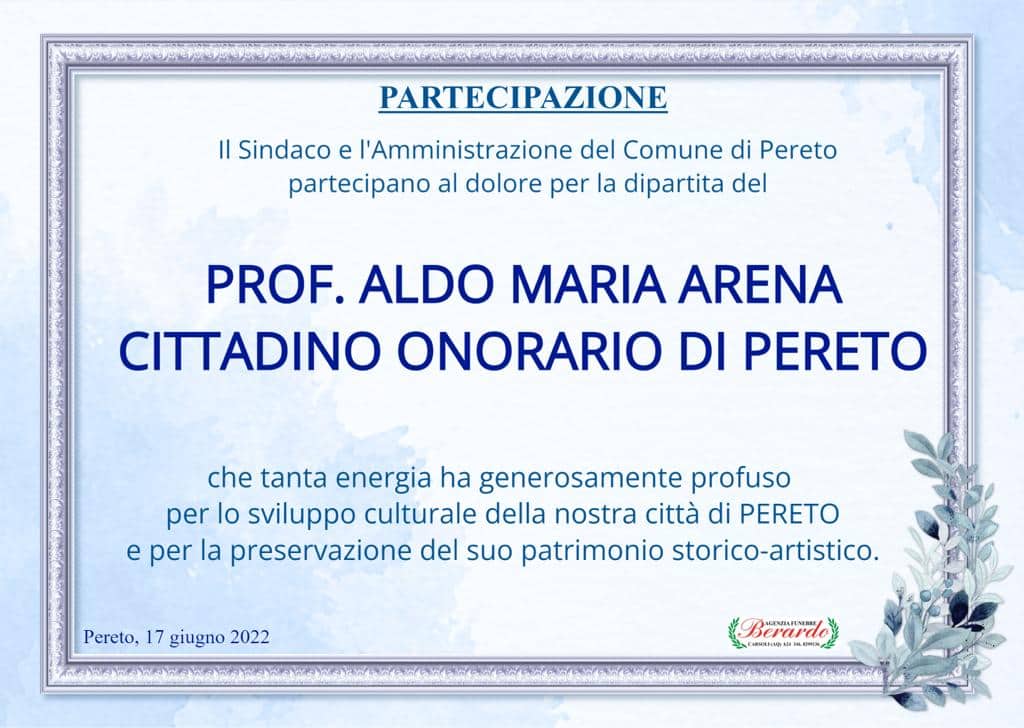 Il Prof. Avv. Aldo Maria Arena nacque  a Roma il 16 aprile 1935.