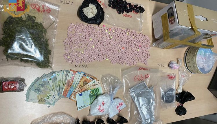 Dal controllo dell’appartamento sono stati rinvenuti ulteriori tipologie di stupefacente, sia classico che sintetico. Nello specifico, occultati all’interno di una credenza, sono stati rinvenuti 1 etto circa di polvere di MDMA (ECSTASY) oltre ad una busta in plastica con all’interno 1021 pasticche del medesimo stupefacente, usualmente utilizzato per feste clandestine e con gravi effetti sull’apparato neurologico; 300 gr di Ketamina pura al 99% e con effetti altamente allucinogeni; 1 etto e mezzo circa di Hashish e Marijuana.