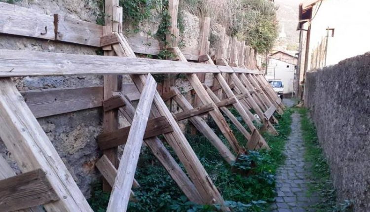 Subiaco – “Questa è la struttura “provvisoria” che da anni sorregge il muro di Via G. Proietti (Loc. Morra Casca), in pieno centro storico a Subiaco.” Così inizia un post pubblicato sui social dal consigliere comunale Matteo Berteletti capo gruppo di “Sguardo al Futuro”.