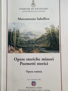 Ma questa nota ci serve anche per lodare un lavoro di ricognizione dell’opera dell’umanista portato avanti all’inizio del nuovo millennio (poi, purtroppo, come spesso in questi casi, interrotto): mi riferisco al volume primo di un progetto di Opera omnia del più grande intellettuale vicovarese curato da Marcello Nobili, Stefania Ronci e Sara Simone. L’appello fra le righe – ma esplicitiamolo pure – è quello di riprendere, in futuro, il progetto, che permetterebbe una divulgazione maggiore dell’opera del Sabellico, una sua sistemazione e anche un’interpretazione filologico-critica in grado di restituirgli il prestigio che merita.