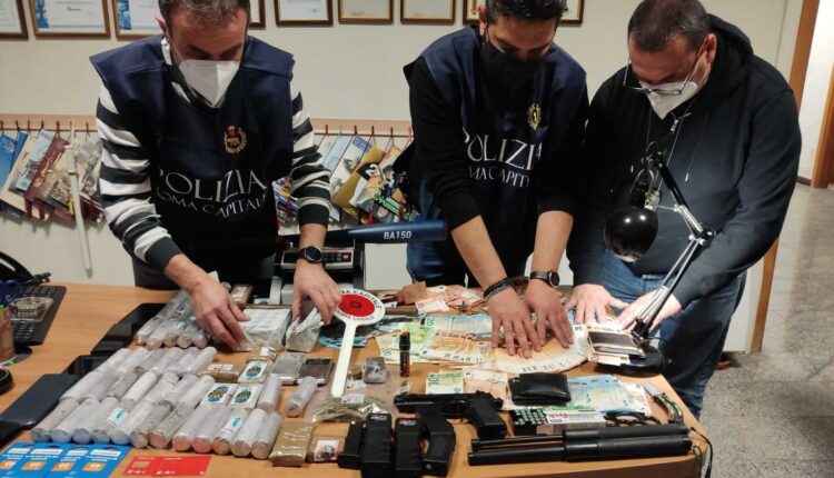 Dopo giorni di attenta osservazione e servizi di appostamento, ieri pomeriggio l’intervento del personale di Polizia Locale di Roma, che ha avuto luogo durante uno scambio di sostanza stupefacente. Fermati tre ragazzi, di età compresa tra i 19 e 21 anni: uno di loro è stato trovato in possesso di un panetto di hashish, oltreché di una somma ingente di denaro. Risaliti alla base dello spaccio, un appartamento che i tre condividevano nella zona, gli operanti procedevano alla perquisizione dell’alloggio, nonché dei veicoli in loro possesso. All’interno dell’appartamento venivano rinvenuti e sequestrati circa 60 panetti di hashish colombiano, già confezionati e pronti per lo spaccio, per un totale di oltre 6 chili di sostanza, unitamente ad una somma di denaro in contanti, per un importo superiore a 10mila euro. Trovati e posti sotto sequestro anche due bilancini con accessori per il confezionamento, una macchina conta banconote, una replica di pistola, simile a quelle in uso alle forze dell’ordine e priva di tappo rosso, munizioni, 3 tasers, tirapugni, bastoni, mazze e spray urticanti.
