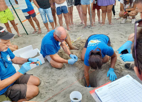E’ dalla metà giugno, con il ritrovamento dei primi nidi, che il lavoro è aumentato, soprattutto per i ricercatori di Tartalazio impegnati nella verifica della presenza delle uova, per la messa in sicurezza del nido e, a volte, nella traslocazione delle uova in una zona più idonea se la deposizione era avvenuta in punti rischiosi per la maturazione degli embrioni e la schiusa.
