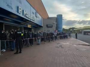 Roma – Questa mattina presso la stazione metropolitana di Ponte Mammolo, alle ore 6:00 una coda lungamente estesa costeggia al di fuori per evitare assembramento in metro. Pendolari infuriati e preoccupati di arrivare in ritardo a lavoro, nel frattempo l’assembramento é stato creato non per volontà dei cittadini ma per condizioni di sicurezza adottate dalle autorità metropolitane e di polizia.