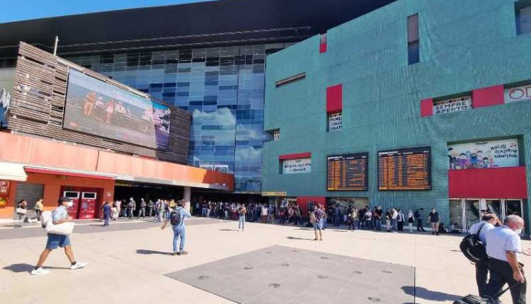 ROMA – Una nutritissima schiera di cronisti e pochi partecipanti alla protesta dei no green pass alla stazione Tiburtina di Roma. Nel Piazzale adiacente all’ingresso della struttura, sotto un sole cocente, i tanti giornalisti, video maker e fotografi cercano refrigerio in una piccola lingua d’ombra nell’attesa – per ora vana – che inizino ad affacciarsi i manifestanti che da giorni promettono battaglia contro l’obbligo di green pass nel trasporto pubblico.