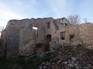 Palombara Sabina – Potremmo parlare di geografia disumana, in relazione a Stazzano Vecchio, nucleo nei pressi di Palombara Sabina abbandonato completamente nel 1901, a seguito di un sisma. La geografia si disegna, di solito, tracciando la linea degli spazi abitati – arrivando a Stazzano, invece, si cammina in stanze in cui non si dorme più, si riconoscono gli ingressi, i forni, le cantine, che sono però disattivati, diventati bidimensionali dopo l’abbandono. Per chi è abituato, come tutti, a vivere dove ci sono le persone, è difficile riuscire a immaginare un gesto di fuga collettivo, radicale, per cui un intero paese si svuota.