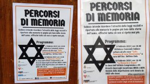 Subiaco – Affisse nelle bacheche e sulle vetrine degli esercizi commerciali di Subiaco le storiche Stelle di Davide (Magden David cfr.) che, nell’ambito della Giornata della Memoria, ci impongono un momento di riflessione. Il Comune di Subiaco, in collaborazione con gli Istituti Scolastici, Ass. Nazionale ex-Deportati, ANPI e Ass. Settimo Cielo, ha redatto una progettualità che aspira a presentare il tema da diverse prospettive, anche grazie alla voce e gli occhi di chi è stato involontario protagonista delle vicende di quegli anni.