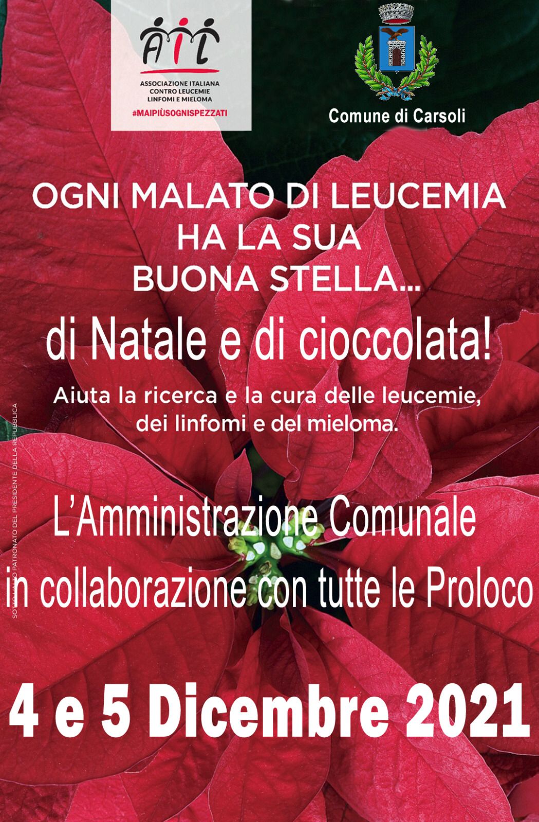 Carsoli – L’appuntamento è per Sabato 4 e domenica 5 dicembre 2021 a Carsoli, per l’iniziativa benefica dedicata al sostegno per l’Ail, l’associazione contro le leucemie.
