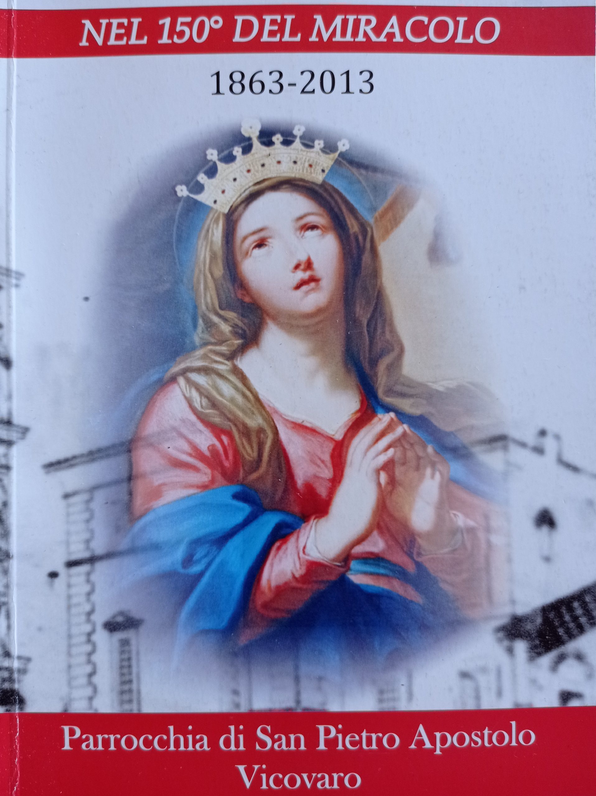 È l’episodio del 1863, tuttavia, a occupare una posizione particolare nella memoria collettiva locale, per intensità dell’accaduto, devozione, sollecitazione di pellegrinaggi da tutto il circondario. Per questo motivo, per il presentarsi ancora ad oggi come “il” miracolo per eccellenza della Madonna vicovarese, nel 2013, ormai sette anni fa, la Parrocchia di San Pietro Apostolo spinse alla produzione di un libretto che rievocasse i momenti dell’accadimento di 150 anni prima e diffondesse tra gli abitanti – e tra le generazioni nuove, in particolare – una storia a rischio oblio, come tutte quelle che tessono le fila della memoria locale e che, perciò, si scontrano facilmente per incompatibilità con la laicizzazione del mondo moderno.
