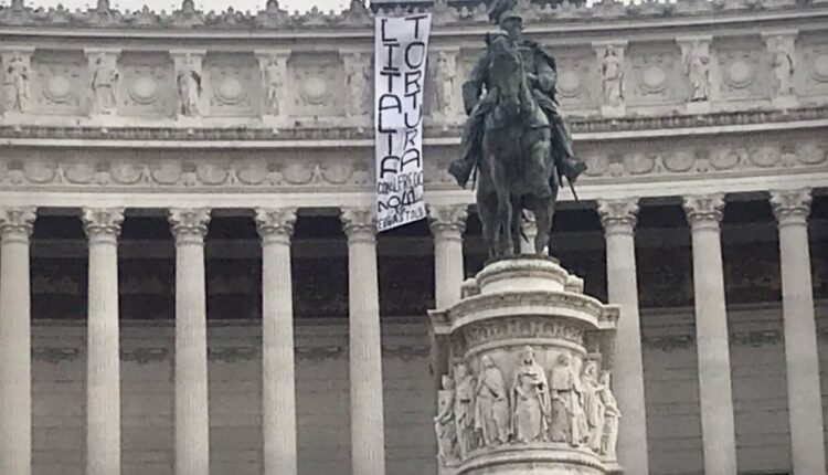 ROMA – Blitz in uno dei luoghi più simbolici della Repubblica: oggi pomeriggio all’Altare della Patria è stato esposto uno striscione con la scritta ‘L’Italia tortura. Con Alfredo no al 41-bis’. Il riferimento è ad Alfredo Cospito, esponente della Federazione anarchica informale, detenuto in regime di carcere duro e in sciopero della fame dallo scorso 20 ottobre