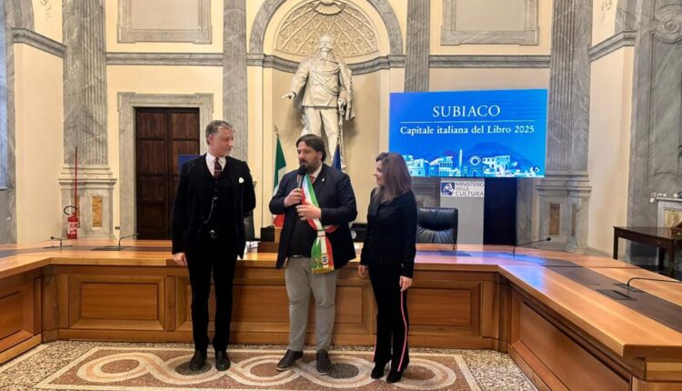 Subiaco – Un borgo certificato dal Touring Club Italiano con la Bandiera Arancione è la Capitale italiana del Libro 2025. Un riconoscimento importante per Subiaco, che come noto ha visto la sua candidatura primeggiare tra le 20 città che avevano presentato i loro dossier di candidatura (in “finale” insieme a Subiaco sono arrivate Grottaferrata, Ischia, Macchiagodena, Mistretta e Sorrento). Ma non una vera e propria sorpresa, visto che il centro dei monti Simbruini ha da sempre un legame stretto con il libro e l’editoria. Lo rende noto il Touring Club Italiano in una intervista in cui si riportano le dichiarazioni del compianto sindaco Domenico Petrini, mancato improvvisamente all’età di 38 anni nell’esercizio delle sue funzioni.