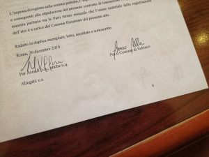 La firma dell’atto transattivo è avvenuta ieri mattina nella Sede di ACEA S.p.a., a Roma, fra il Sindaco di Subiaco, Francesco Pelliccia e il Procuratore Generale di Acea S.p.A. Avv. Giuseppe Del Villano.