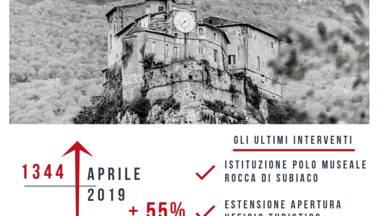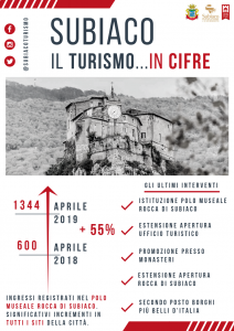 Un’analisi dei dati degli ultimi due anni, registrati dall’attrattore turistico principale del centro urbano, il Polo della Rocca di Subiaco, dimostrano un incremento delle presenze del 55%.