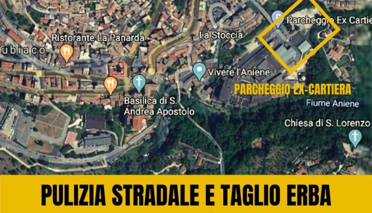 Subiaco – A partire dalle ore 7.00 del 4 settembre prossimo, l’area parcheggio della ex-Cartiera sarà interessata da lavori di pulizia stradale e taglio erba, pertanto la zona sarà interdetta alla sosta veicolare.