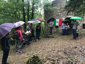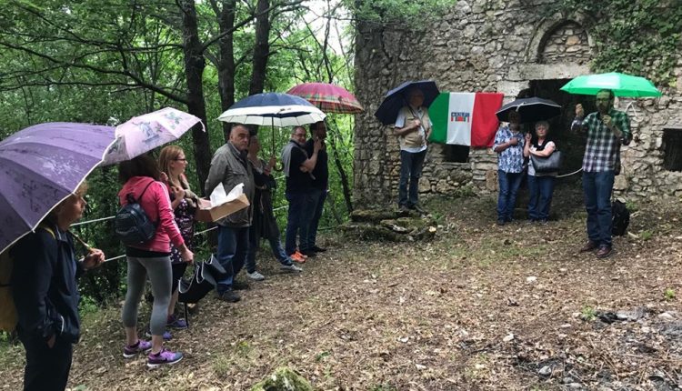 Subiaco – Stamattina, durante le uniche tre ore di pioggia di Giugno, il sindaco Pelliccia ha partecipato unitamente all’Assessore alla Cultura Angela Marocchini, all’evento promosso dall’ ANPI Subiaco sezione “Giulio Valente” che hanno reso nuovamente fruibile le vestigia della chiesetta medioevale di “Colle Ratti”, posta sul sentiero pedonale che una volta univa Subiaco ad Affile. E’ un luogo simbolo del periodo della Resistenza locale e dei giorni terribili dei bombardamenti sulla Città, perchè qui perirono 5 bimbi con la loro madre. “Un luogo ritrovato della Comunità, ha spiegato Pelliccia – un luogo evocativo. Che cercheremo, raccogliendo l’appello dei promotori, di rendere un “percorso della memoria. Grazie all’Anpi. Ogni luogo riscoperto è una conquista della Comunità e sosterremo sempre iniziative tese al recupero della memoria collettiva e del nostro patrimonio culturale.”