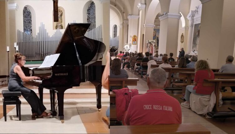 CARSOLI – Nella suggestiva cornice della Chiesa Parrocchiale di Santa Vittoria si è svolta ieri sera una vera e propria celebrazione musicale con il concerto “Sulle ali della musica”. Al pianoforte la professoressa Simonetta Simonetti ha eseguito un repertorio scelto per l’occasione con arrangiamenti particolari facendo vivere al pubblico presente un viaggio sonoro intenso e coinvolgente in una diversità di generi musicali. Il pubblico ha tributato alla Prof.ssa vere e proprie ovazioni.