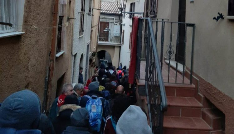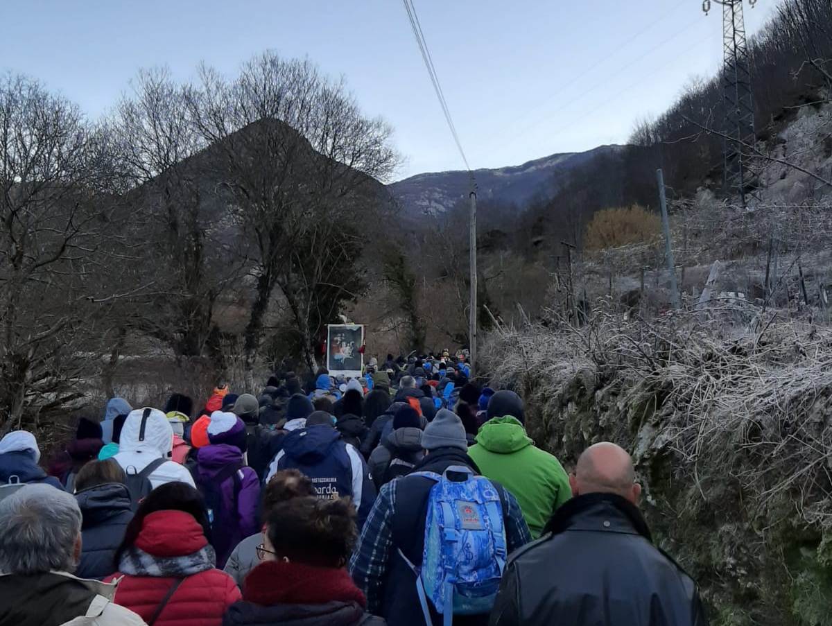 Suggestivo arrivo dei pellegrini a Vallepietra per la Festa dell’Apparizione della Santissima Trinità