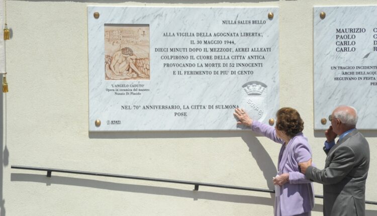 Sulmona – Emozioni oggi alle ore 12.10 quando cinquantadue rintocchi del “campanone” della Chiesa dell’Annunziata rhanno ricordato le vittime del bombardamento dei caccia angloamericani che colpì anche largo Faraglia e piazza Del Carmine mentre si svolgeva il tradizionale mercato.