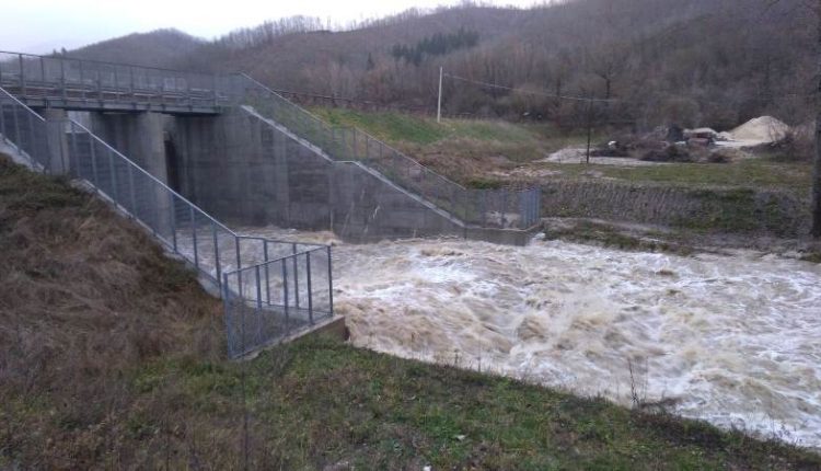 Carsoli – E’ stato superato il livello di sicurezza sulla Diga Valle Mura di recente realizzazione in prossimità della Tiburtina Valeria nei pressi del bivio di Tufo. Già da questa mattina era spuntato un lago nell’area adibita a vasca di laminazione. Acqua piovana che è stata “laminata” e si è accumulata nella vastissima area adibita per tale utilizzo. Ma poi con il passare delle ore i livelli hanno superato la barriera di sicurezza della Diga ed attualmente l’acqua si sta riversando con una forza e velocità impressionante sui terreni circostanti.