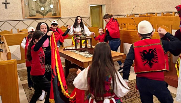 I ragazzi e i bambini albanesi presenti, in costume nazionale e con gli strumenti della loro tradizione, hanno eseguito il canto patriottico “Lezha di Scanderbeg” e la danza “Valle di Tropoja”.