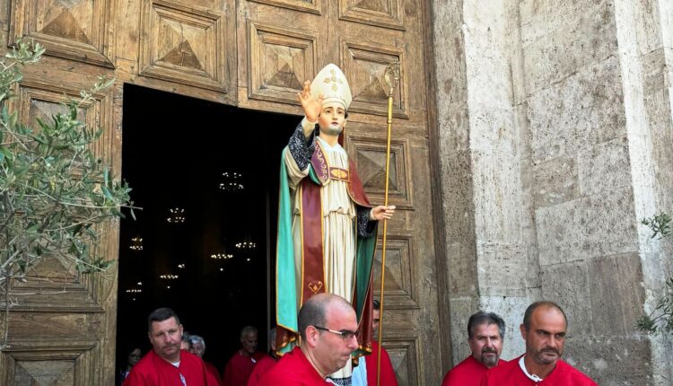 TAGLIACOZZO – Una numerosa rappresentanza di tagliacozzani, guidati dal Parroco d. Ennio Grossi e dal Sindaco Vincenzo Giovagnorio, si è recata in pellegrinaggio ad Ascoli Piceno per venerare la tomba di Sant’Emidio vescovo e martire. L’occasione è stata la benedizione da parte del Vescovo Gianpiero Palmieri della restaurata Statua che si venera in Tagliacozzo, al termine di una solenne Celebrazione eucaristica nella Cattedrale della Città marchigiana.