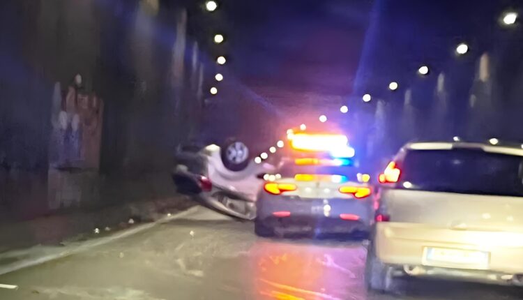 Tangenziale est di Roma, auto si ribalta in galleria: paura e traffico in tilt