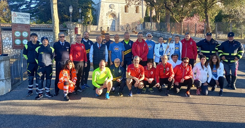 Nel mentre a Subiaco, la fiaccola partita da Cassino e diretta Norcia, viene accolta al Sacro Speco alla presenza del Priore Dom. Maurizio Vivera, e dei rappresentanti dell’amministrazione comunale.”