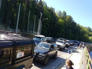Carsoli – Risveglio al rombo di motori per la Città di Carsoli  che insieme al sole di questa mattina ha visto arrivare ben oltre duecento fuoristrada. Il raduno organizzato dal Friends Club Off Road di Roma, prevede la traversata Roma-Pescara a bordo dei fuoristrada. Carsoli è stata scelta come tappa di partenza, visto che nella capitale romana era alquanto difficile trovare un posto dove poter riunire tutti questi automezzi. E quindi in Piazza della Libertà sono state organizzate le iscrizioni. I conducenti con gli accompagnatori hanno dapprima schierato i fuoristrada in via della Pineta Nuova ed in piazza della Fonte Vecchia, per poi procedere alle registrazioni in Piazza della Libertà. Dopo tutte le procedure, l’esercito dei fuoristrada ha proseguito il suo cammino, ovviamente sulla Tiburtina Valeria in direzione di Pescara, dove ci sarà la fase finale con le valutazioni e assembramento di fine raduno. Ringraziamenti sono stati espressi da parte dell’organizzazione al Sindaco di Carsoli Velia Nazzarro per la disponibilità ed accoglienza.