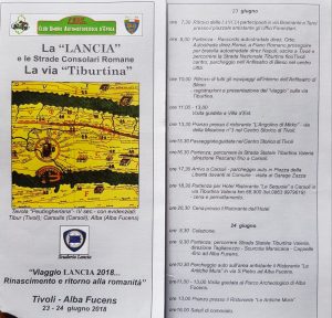 Dopo aver viaggiato sulle Strade Consolari Romane – Flaminia (2011-2012-2013), Aurelia (2014-2015), Appia (2016) e Cassia (2017), per il “Viaggio LANCIA 2018” farà da cornice la “Via Tiburtina” che porterà i 30 equipaggi da Tivoli ad Alba Fucens.