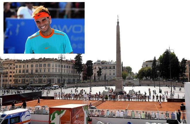 Alle 17.30, Piazza del Popolo accoglierà Nadal sul campo in terra rossa allestito per portare un po’ di Internazionali al centro di Roma.  Una grande occasione, promossa dall’Assessorato ai Grandi Eventi, Sport, Turismo e Moda, per diffondere lo sport e avvicinarlo alla gente.