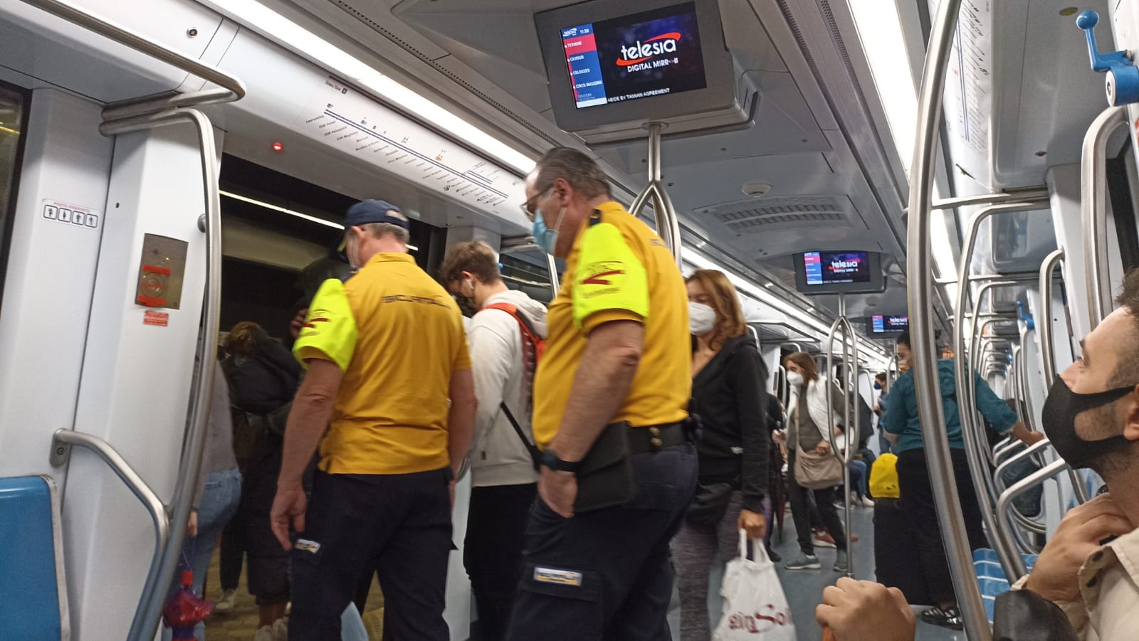 Roma – Attimi di tensione sulla linea della metropolitana B questa mattina intorno alle ore 11.30 tra Colosseo e Garbatella. Un ragazzo, come si nota nella foto è seduto e con la mascherina leggermente abbassata sotto al naso. Al che gli si presenta dapprima un controllore, seguito poi da altri che gli intimano con metodi tralaltro piuttosto bruschi e poco educati di rimettere immediatamente la mascherina al suo posto con naso coperto. Il ragazzo, spiega di aver avuto problemi respiratori e che era stato costretto a mantenere il naso libero per poter respirare meglio, mantenendo però la distanza dagli altri.