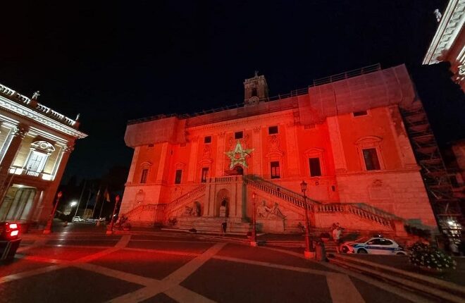 ROMA – Per esprimere solidarietà al popolo marocchino, il Comune di Roma in collaborazione con Acea ha illuminato di rosso Palazzo Senatorio.