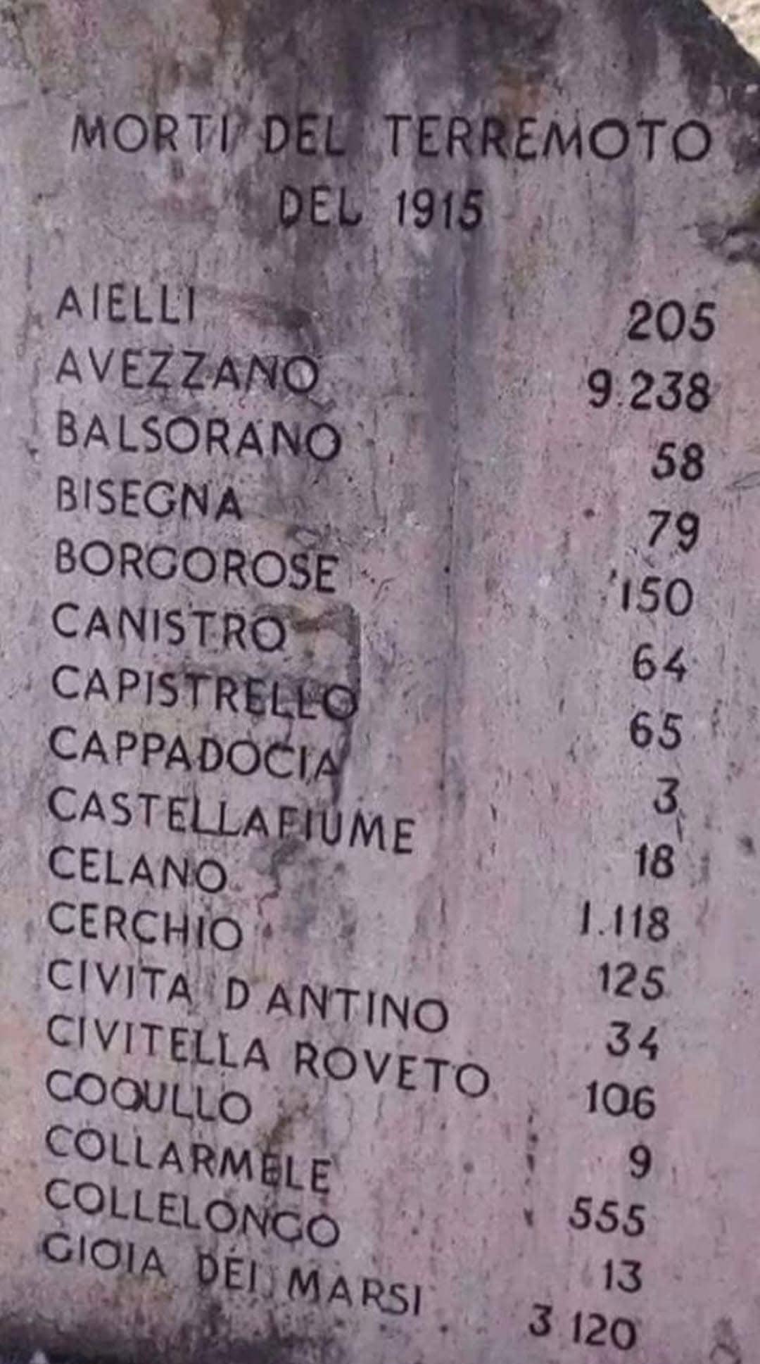 Il terremoto della Marsica fu certamente una delle tragedie più devastanti nella storia d’Italia ed oggi al 110 º anniversario della catastrofe, e’ ancora più importante commemorare tutte le vittime, ringraziare chi contribuì con generosità alla ricostruzione della Marsica ma anche continuare a diffondere senza sosta la cultura della sicurezza sismica.