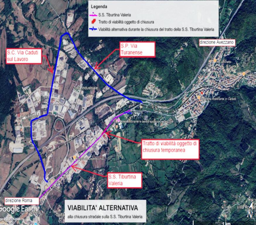 CARSOLI – Al via da oggi la chiusura di due giorni della Tiburtina Valeria dal Km:  69+400 al Km  69+600. Il tratto per cui è disposta l’interruzione per ogni utilizzo dell’asse viario, è sia carrabile che pedonale e si è reso necessario per consentire i lavori  di installazione per il nuovo ponte di legno ciclistico-pedonale come noto chiuso da diverso tempo. Sabato mattina la circolazione riprenderà regolarmente.