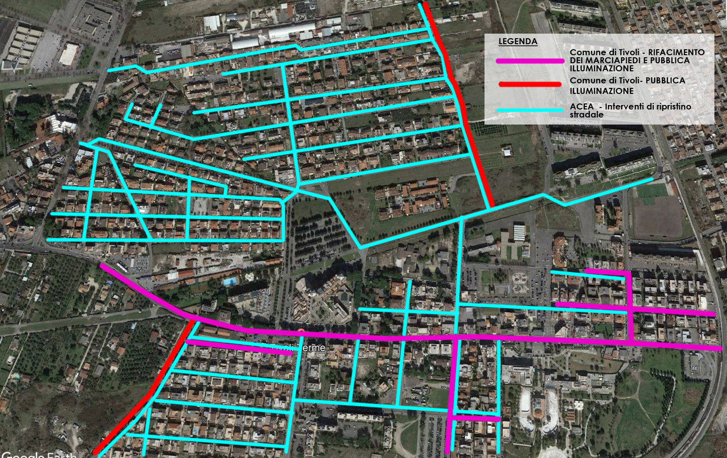 I lavori di rifacimento di questi manti stradali, a seguito di accordo tra Comune di Tivoli ed ACEA, saranno eseguiti direttamente da ACEA subito dopo il completamento della sostituzione della rete idrica principale, attualmente in corso, e dei nuovi allacci delle singole utenze.