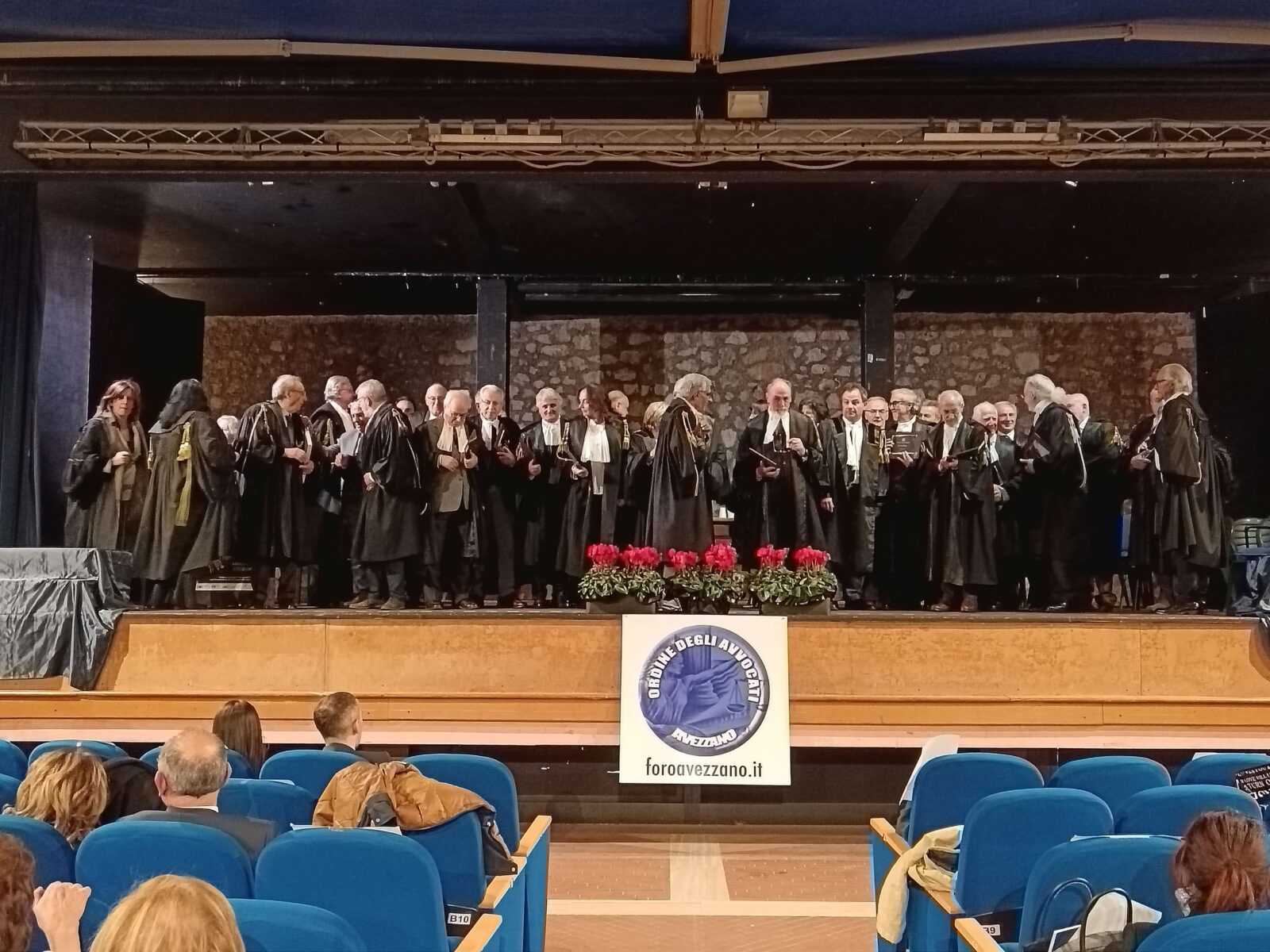 Avezzano. Importante cerimonia di conferimento del prestigioso riconoscimento alla carriera di Avvocati del foro di Avezzano. Conferite nel corso dell’evento, che torna dopo 25 anni per iniziativa dell’Ordine degli Avvocati, toghe prestigiose d’oro, di platino e di diamante, rispettivamente assegnate a quei professionisti che hanno svolto la professione per 40, 50 e 60 anni di attività.