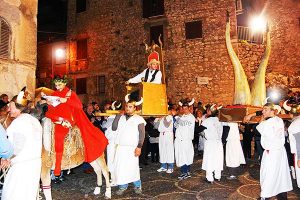 Centro della manifestazione è il corteo burlesco che si snoda per le vie del paese e durante il quale si portano in processione i simboli del tradimento coniugale mentre un poeta sbeffeggia i prtecipanti con le sue mordaci strofe.Presso i nostri stands potrete assaporare le specialità del luogo come Role (castagne arrosto), cecamariti (pasta tipica), panini con salsiccia e cicoria, patatine, arrosticini e tanto vino…