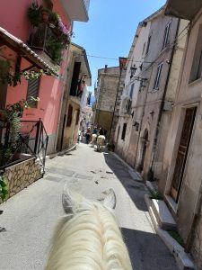 “I punti più critici – racconta Ilaria – sono stati, a livello tecnico, la discesa in pendenza su versante roccioso verso Luco dei Marsi e il valico dell’Aceretta da Villavallelonga a Pescasseroli, sia per la pendenza in salita nel bosco, sia per la discesa a picco su versante franoso; per la resistenza, invece, sicuramente il secondo giorno è stato il più duro per le molte ore sotto il sole. Ma i tratti più belli al galoppo sono stati sicuramente la Valle della Dogana (Camporotondo -Tagliacozzo) e la Piana del Fucino”.