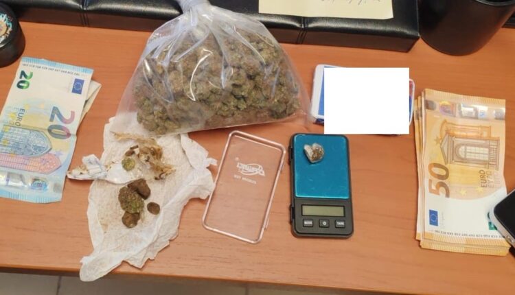 All’interno del veicolo, perquisito in ogni sua parte venivano rinvenuto due involucri di cellophane contenente ognuno 100 grammi di sostanza stupefacente del tipo hashish e marijuana, un bilancino di precisione e materiale per il confezionamento, il tutto posto sotto sequestro.