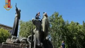 Roma – Cercava probabilmente solo attenzione il ragazzo che domenica 30 giugno pomeriggio, nella calda estate romana, in piazza San Giovanni, dopo essersi arrampicato a torso nudo sul monumento a San Francesco d’Assisi, minacciava di buttarsi. Sono stati 2 equipaggi della Polizia di Stato, dei commissariati Esquilino e San Giovanni, con non poca difficoltà, a bloccarlo ed affidarlo alle cure del 118.