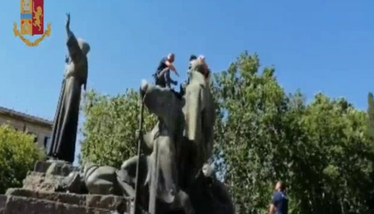 Trentenne si arrampica sulla statua di San Francesco a Piazza San Giovanni, Minacciava di buttarsi, salvato dalla Polizia