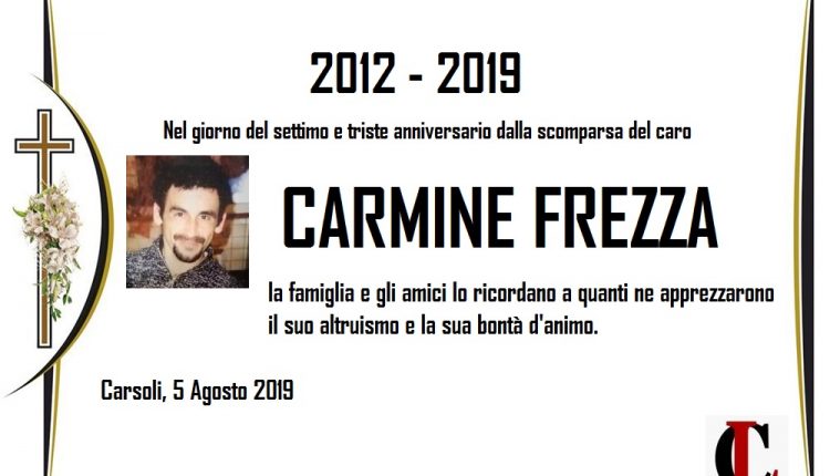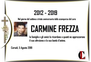 Carsoli – Il 5 Agosto 2012 veniva tragicamente a mancare all’affetto dei suoi cari all’età di anni 30 la cara esistenza di CARMINE FREZZA.