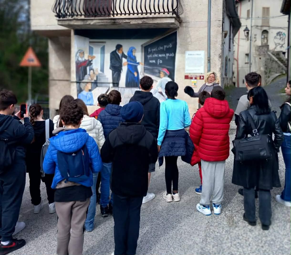 L’iniziativa si è rivelata un momento significativo di incontro tra arte e nuove generazioni. I ragazzi hanno seguito con attenzione e curiosità le spiegazioni sulle opere, dimostrando grande interesse per i messaggi, le tecniche e le storie racchiuse nei dipinti murali disseminati nel borgo.