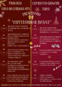 Tufo – Si accende la magia del Natale a Tufo di Carsoli, il paese delle Arti si prepara per vivere insieme a tutta la comunità gli imperdibili eventi del Santo Natale. Come da tradizione, il periodo natalizio verrà inaugurato l’8 dicembre, giorno dell’Immacolata Concezione, con l’accensione delle luminarie di Natale. Insieme ai ragazzi del Comitato Giovani Tufo, la Proloco di Tufo è lieta di presentare tutti gli appuntamenti che coinvolgeranno grandi e piccini in magici momenti da condividere in allegria. Mercatini natalizi, l’arrivo di Babbo Natale, addobbi, Lanternata dei desideri, tanti i nuovi appuntamenti che renderanno uniche le festività natalizie 2023. In attesa della santa festività, per accendere lo spirito natalizio, la proloco invita tutta la popolazione ha partecipare al concorso ‘Illuminiamo ed addobbiamo il piccolo borgo’, evento che si concluderà il 6 gennaio 2024 con la proclamazione del vincitore.