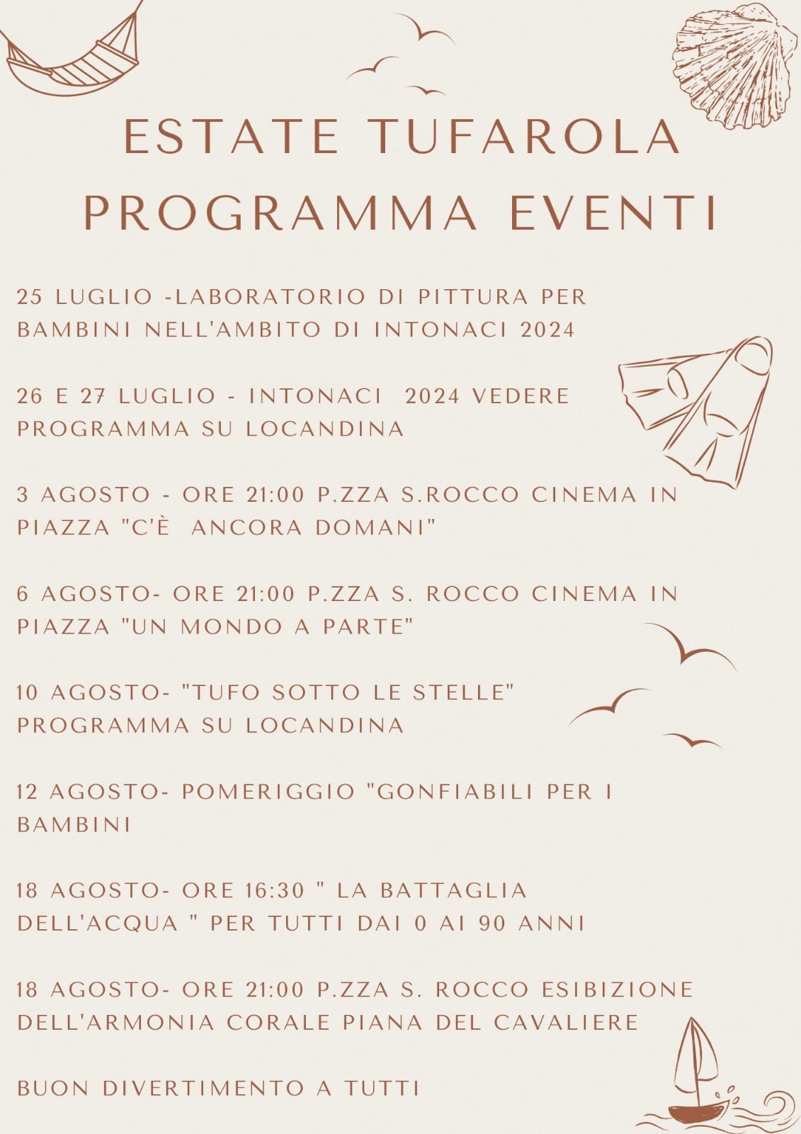 TUFO DI CARSOLI – Un susseguirsi di eventi unici, in un comune denominatore del programma reso noto dalla pro Loco di Tufo. Si parte con il laboratorio di pittura di Intonaci dal 25 luglio per arrivare poi ad una sequenza di iniziative che si concludono il 18 Agosto. Di seguito il programma!