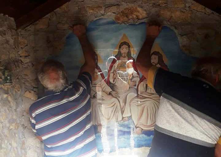 Tufo di Carsoli – E’ stata restaurata l’effige della Santissima Trinità nella piccola e suggestiva cappella di Tufo di Carsoli. Come si ricorderà questo luogo di fede era stato oggetto di vandalizzazioni inconcepibili. La Santissima è stata restaurata ed ora è tornata a splendere, ma con una protezione in più, infatti è stato il signor Angelo Cecalupo che ha voluto donare un apposito vetro per evitare ulteriori graffi o danneggiamenti. Il recupero dell’effige è stato curato da Lorena Bernardi e da Lorenzo Di Gabriele che l’hanno recuperata nei minimi dettagli.